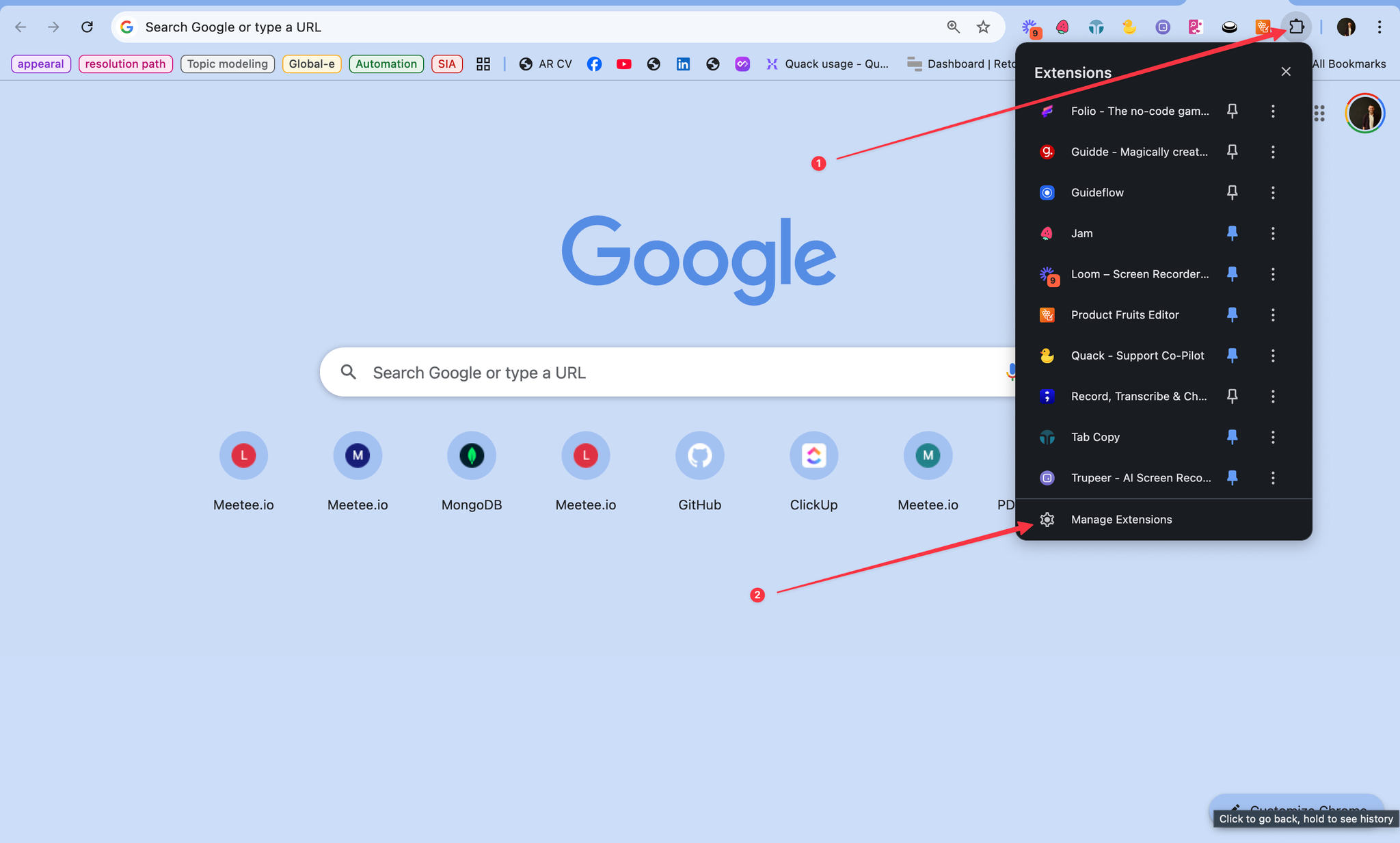 Click Extensions in Chrome, then select Manage Extensions.